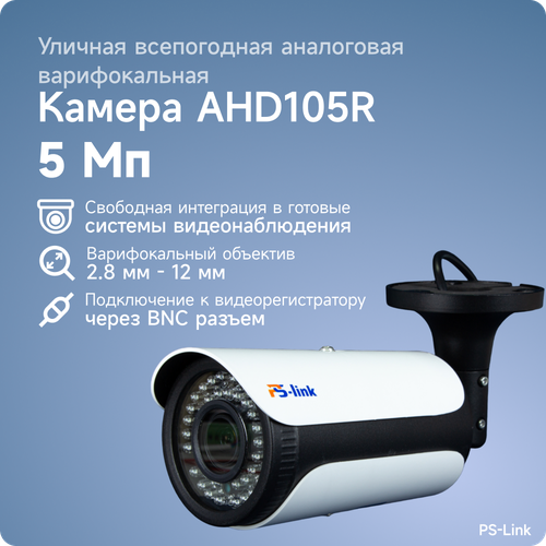Цилиндрическая камера видеонаблюдения AHD 5Мп PS-link AHD105R с вариофокальным объективом