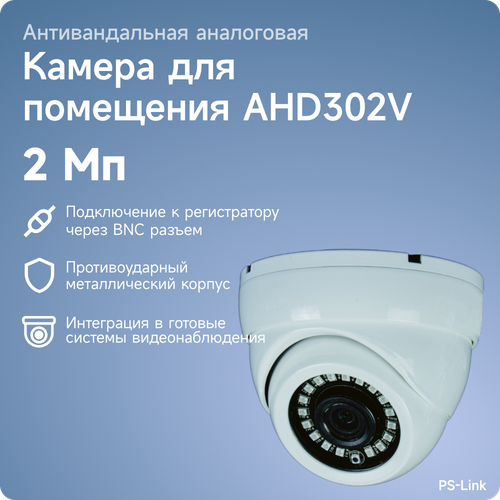 Купольная камера видеонаблюдения AHD 2Мп 1080P PS-link AHD302V антивандальная