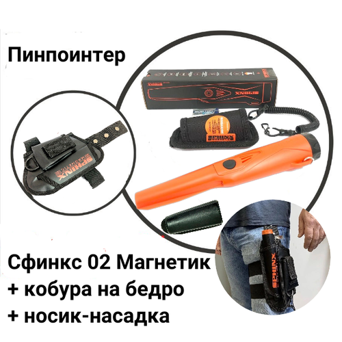 Пинпойнтер Сфинкс 02 (Sphinx) Magnetic оранжевый, кобура Сфинкс Magnetic на бедро (черная)