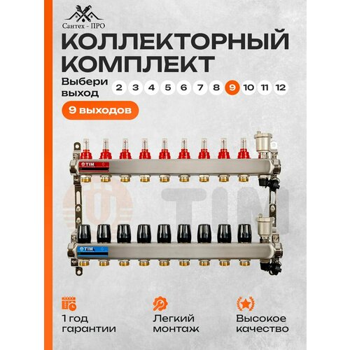 Коллектор для теплого пола на 9 контуров с расходомерами до 110 кв/м