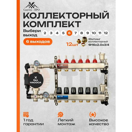Коллекторная группа 1"-3/4" евроконус из латуни 6 выхода без расходомеров TIM KB006