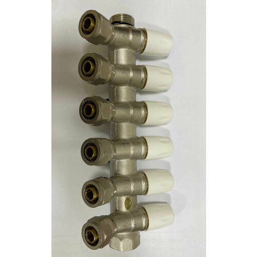 Распределительный регулировочный коллектор вентильный под 45гр. 3/4"-Ф16 - 6 выхода TIM MR135N-3/4-C-6