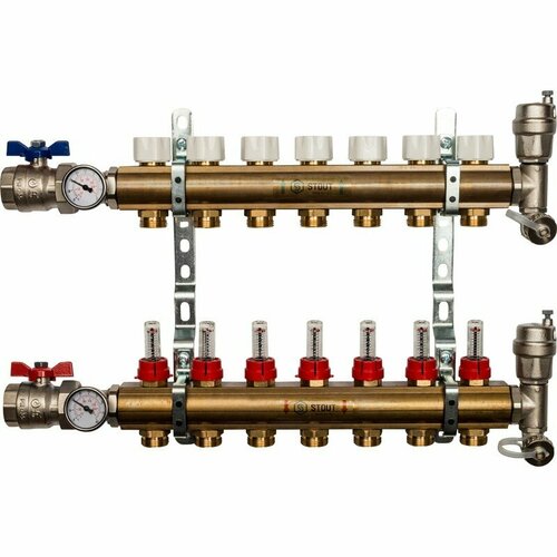 Коллектор с расходомерами, с запорными клапанами 8 вых. Stout (SMS-0927-000008)
