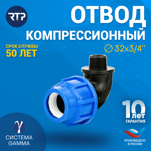 Отвод (угол) компрессионный ПНД с наружной трубной резьбой RTP, PN16, D32 х 3/4"