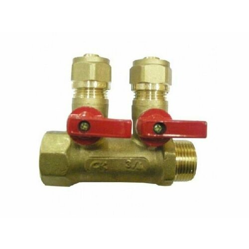 Коллектор водоснабжения с шаровыми кранами для металлопластиковых труб 3/4"x16мм 2 выхода цанга