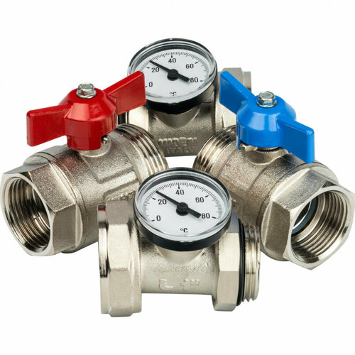 Комплект прямых шаровых кранов с термометрами 1 STOUT (SMS-1000-030001)
