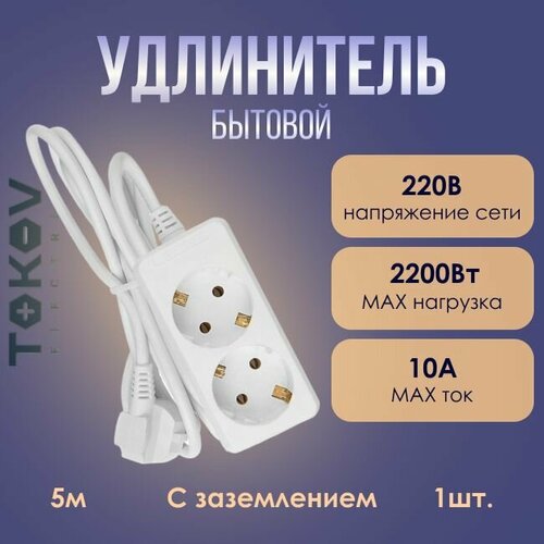Удлинитель TOKOV ELECTRIC с заземл. 10А 3х0.75 5м - 1шт.