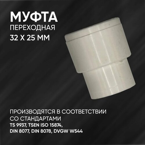 Муфта полипропиленовая переходная, белая, FIRAT арт. 7B23032025, Н/В 32 х 25 мм