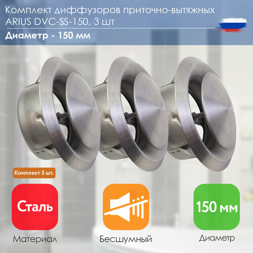 Комплект 3 шт. Диффузор/Анемостат приточно-вытяжной нержавеющая сталь ARIUS DVC-SS-150 (арт. 135555), 150 мм