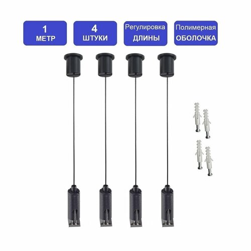 Комплект универсальных тросовых подвесов 4шт *1м - для монтажа светильников, рекламных конструкций и др. оборудования - LT86472(4-10). Черный цвет черный