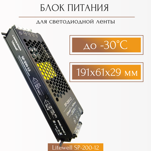 Блок питания 12V для светодиодных лент, мощность 200Вт, Litewell SP-200-12