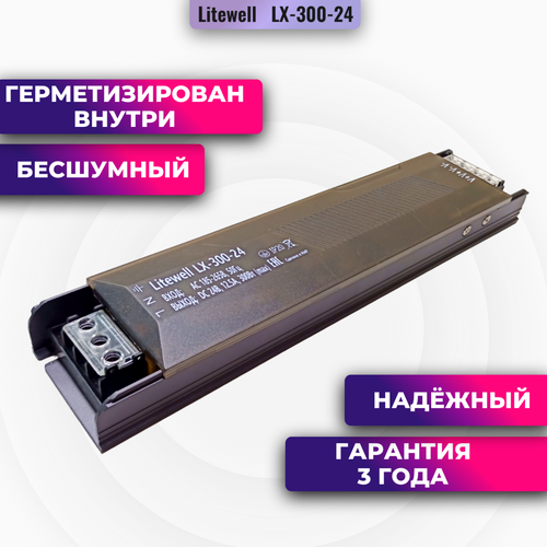 Блок питания светодиодной ленты 24 Вольт - Litewell LX-300-24 SG, мощность 300Вт