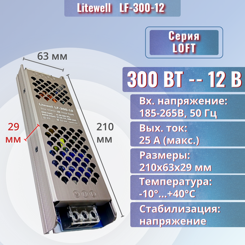 Блок питания для светодиодной ленты 12v, мощность 300Вт - Litewell LF-300-12