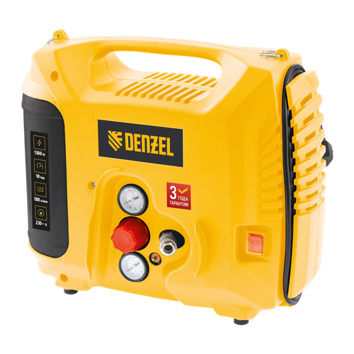 Компрессор воздушный DL1300, 10 бар, 1,3 кВт 180 л/мин 5 л, с набором аксессуаров Denzel 58011