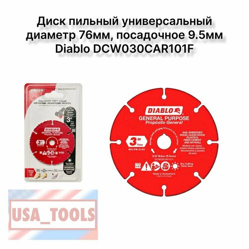 Диск пильный универсальный диаметр 76мм, посадочное 9.5мм Diablo DCW030CAR101F