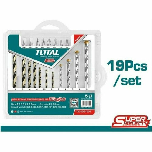 Набор сверл по металлу, бетону и бит,19 предметов TOTAL TACSDB1901