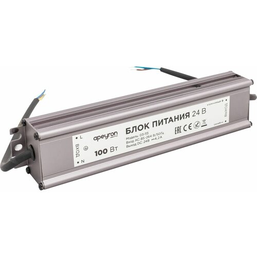 Apeyron Блок питания 24В,100Вт, импульсный, IP67, 175-265В,4,2А, алюм, сереб, 205-46-35мм./03-113