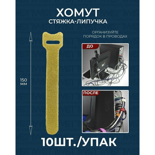 Хомут стяжка-липучка многоразовая TWIST для проводов и кабелей 150 мм, 10 шт/упак.