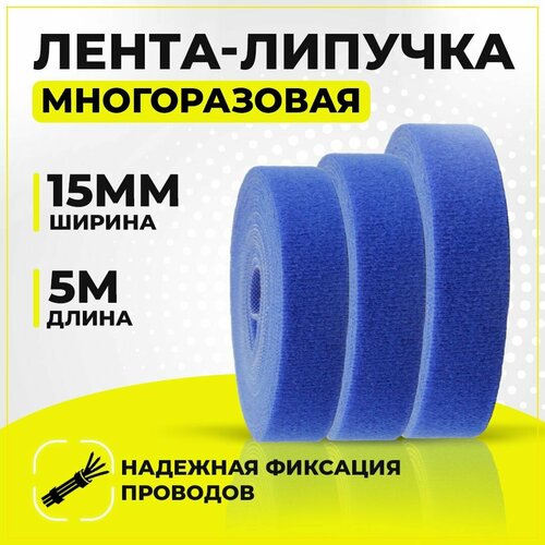 Стяжки нейлоновые для проводов, хомут, лента-липучка многоразовая, 5м, синяя