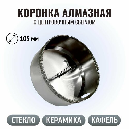 Коронка алмазная по кафелю, стеклу, керамограниту и керамике; 105 мм, с центрирующим сверлом