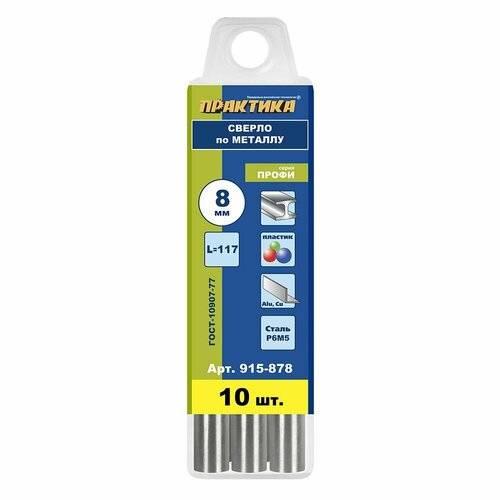 Сверло по металлу ПРАКТИКА профи 8.0 х 117 мм 10 шт