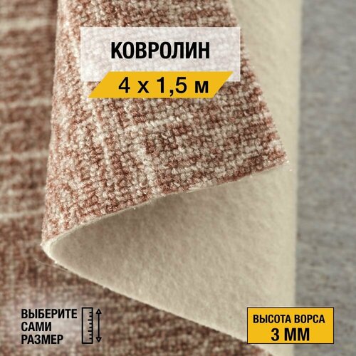 Ковролин для офиса и дома "Элиз 17-49" 4х1,5м. Ковролин на пол метражом "Нева Тафт", коллекция Принт, петлевой, светло-коричневого цвета