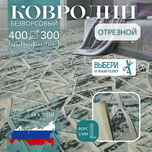 Ковролин метражом 4х3 м, без ворса "Тадж", серо-голубой без оверлока