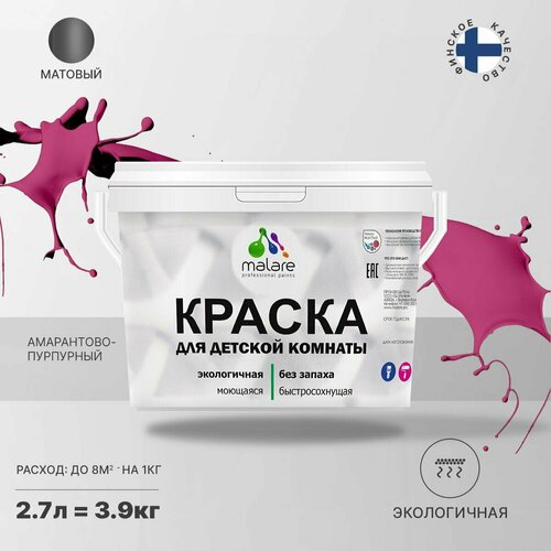Краска акриловая Malare для детской комнаты для детской влагостойкая моющаяся матовая амарантово-пурпурный 2.7 л 3.9 кг