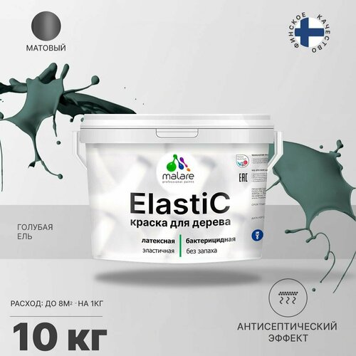 Краска Elastic для деревянных поверхностей, для внутренних и наружных работ, с антисептическим эффектом, матовая, голубая ель, 10 кг.