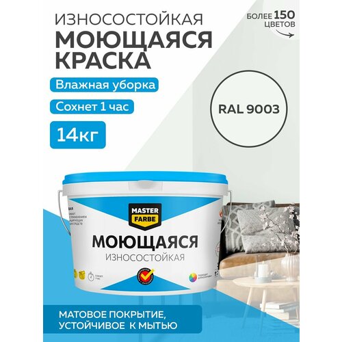 Краска MASTERFARBE акриловая моющаяся, цвет RAL 9003, 9л
