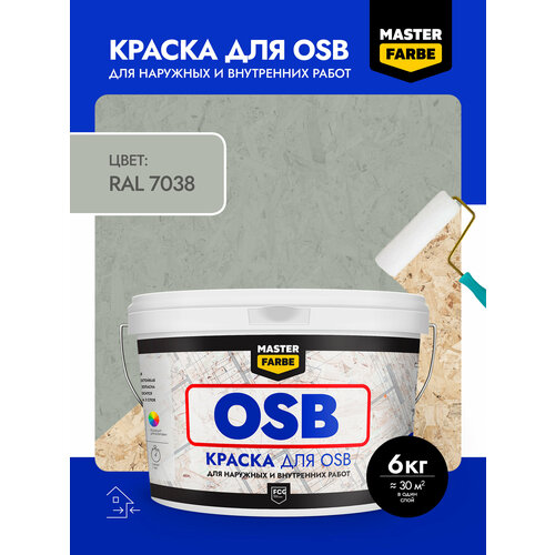 Краска акриловая MASTERFARBE для OSB плит, Матовое покрытие, 6 кг, серый, RAL 9016
