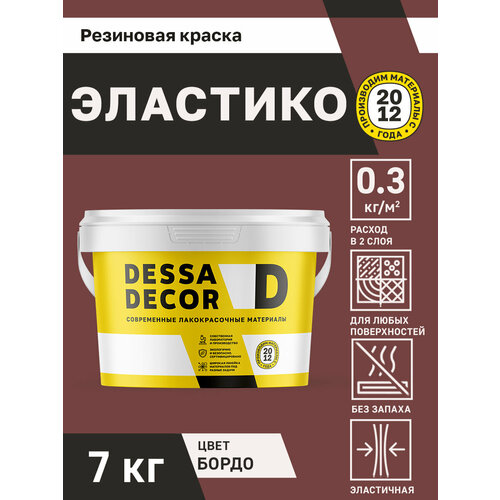 Краска резиновая трещиностойкая DESSA DECOR Эластик 7 кг, цвет бордовый