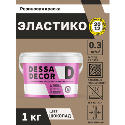 Краска резиновая трещиностойкая DESSA DECOR Эластик 1 кг, цвет коричневый / шоколад