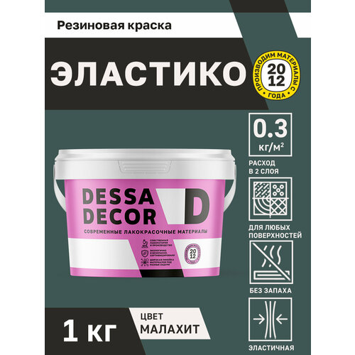 Краска резиновая трещиностойкая DESSA DECOR Эластик 1 кг, цвет изумрудный / малахит