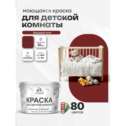Краска акриловая (АК) Malare Краска Malare интерьерная для детской комнаты, для стен и обоев, для потолка, акриловая без запаха моющаяся матовая, багровый агат (1л - 1.3кг) матовая багровый агат 1 л 1.3 кг~Краска акриловая (АК) Malare Краска Malare интерьерная для детской комнаты, для стен и обоев, для потолка, акриловая без запаха моющаяся матовая, лиственный (9л - 13кг) матовая лиственный 9 л 13 кг