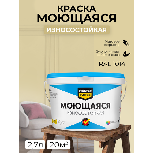 Краска MASTERFARBE акриловая моющаяся, цвет RAL 1014, 2,7л