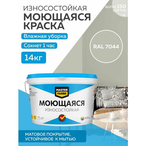 Краска MASTERFARBE акриловая моющаяся, цвет RAL 7044, 9л