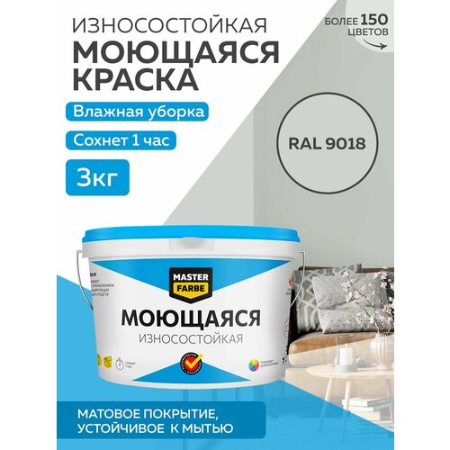 Краска MASTERFARBE акриловая моющаяся, цвет RAL 9018, 2,7л