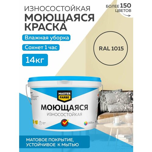 Краска MASTERFARBE акриловая моющаяся, цвет RAL 1015, 9л