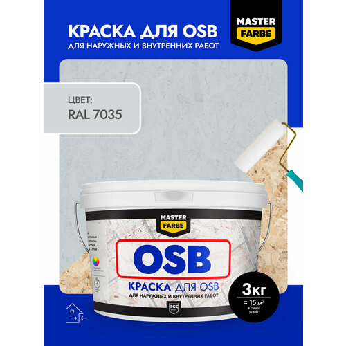 Краска акриловая MASTERFARBE для OSB плит, Матовое покрытие, 3 кг, серый, RAL 7035