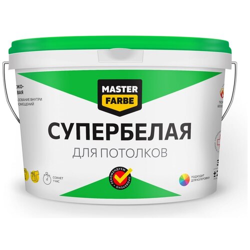 Краска водно-дисперсионная Master Farbe Супербелая для потолков 14 л 14 кг