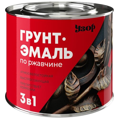 Грунт-эмаль UZOR 3в1 по ржавчине (красная) 0,8кг
