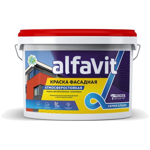 Краска акриловая Alfavit Фасадная супербелая влагостойкая моющаяся 40 кг