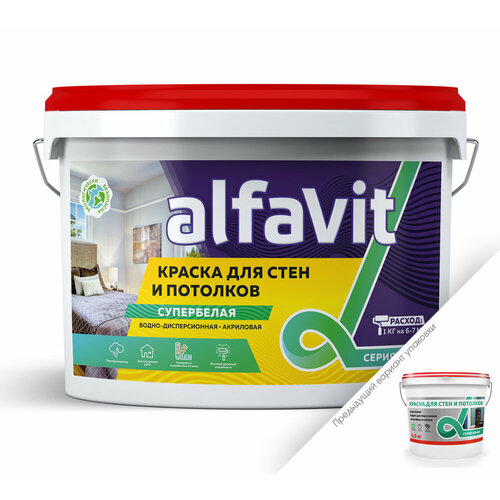 Краска для стен и потолков водно-дисперсионная Alfavit серия Альфа, супербелая, 6,5 кг