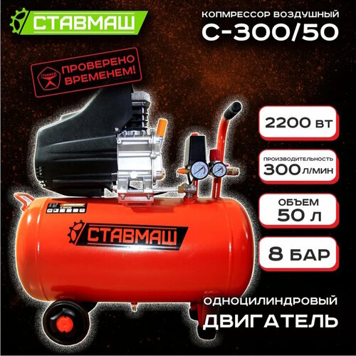 Компрессор Ставмаш С-300 50 л, воздушный, масляный, поршневой 2200 Вт, 8 бар