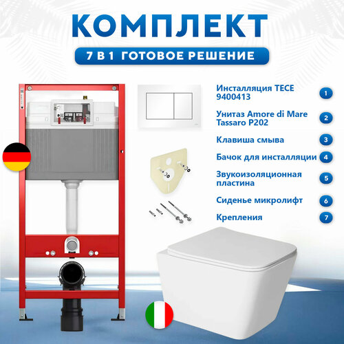 Инсталляция с унитазом комплект 7 в 1: инсталляция TECE 9400413 + унитаз подвесной безободковый Amore di Mare Tassaro P202 + сиденье с микролифтом