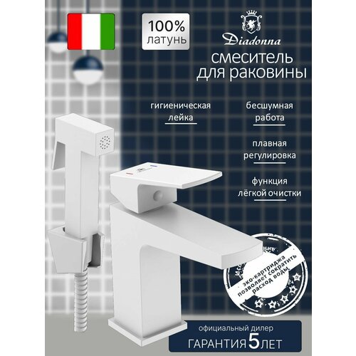Смеситель для раковины с гигиеническим душем Diadonna D170-12W смеситель с гигиенической лейкой, латунь