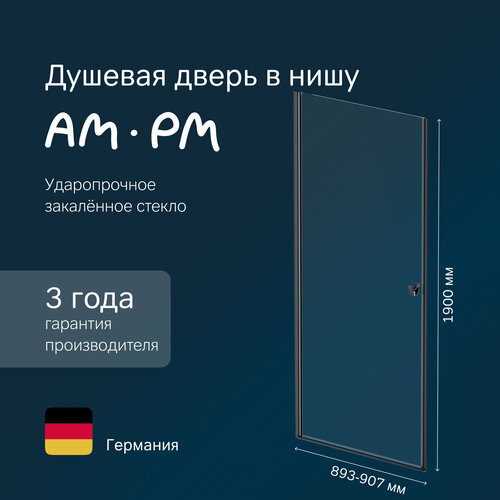 Душевая дверь в нишу AM.PM Sunny распашная 90x190см, стекло прозрачн, профиль черный