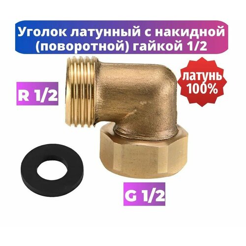 Уголок для душевых кабин 1/2" с накидной гайкой, латунь, нар/внут.