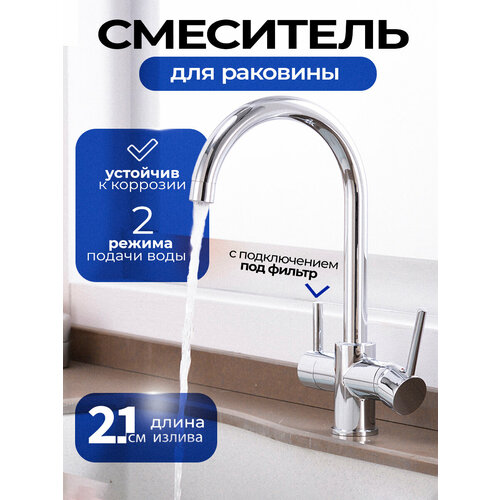 Смеситель для кухни с фильтром Aqua Silver серебристый, кран для раковины, нержавеющая сталь